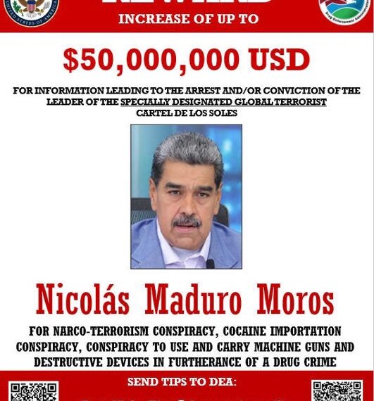 Maduro enfrenta desde 2020 cargos federales en Estados Unidos por narcoterrorismo y conspiración para importar cocaína. En ese año, bajo la administración de Trump, se ofreció inicialmente una recompensa de 15 millones de dólares, cantidad que posteriormente el gobierno de Joe Biden incrementó a 25 millones.
