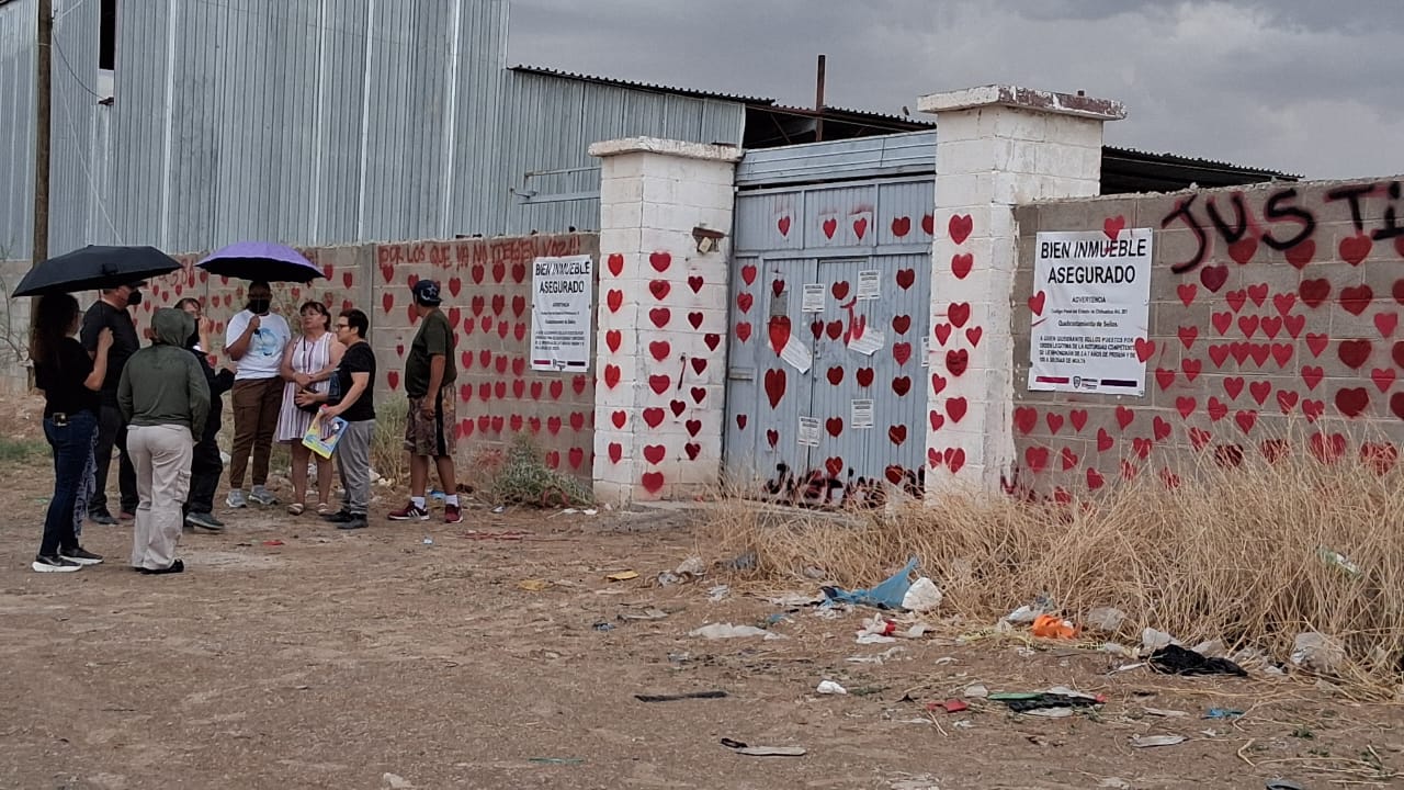 Ciudad Juárez, Chih.- Un grupo de personas, identificadas como familiares, realizó un plantón en el crematorio Plenitud, donde además plasmaron pintas y dibujaron corazones en las paredes del inmueble.