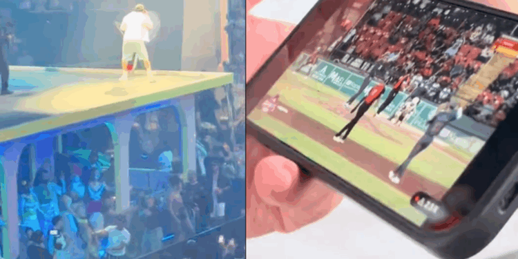 Durante el concierto en el Coliseo de Puerto Rico, en medio del ambiente eufórico y las luces del escenario, este seguidor mostró con orgullo cómo disfrutaba del evento sin perder detalle del encuentro deportivo.
