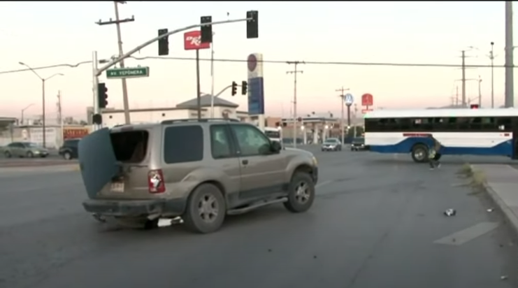 Ciudad Juárez, Chih.- Un accidente vial entre una camioneta Ford Explorer y un camión de transporte de personal marcado con el número 10414 provocó afectaciones en la circulación este jueves, en el cruce de las calles Yepómera y Santiago Troncoso. A pesar de lo aparatoso del impacto, no se reportaron personas lesionadas, únicamente daños materiales considerables, especialmente en la camioneta particular.