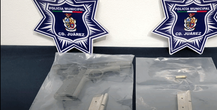 Ciudad Juárez, Chih.- La Secretaría de Seguridad Pública Municipal informó que los dos menores fueron detenidos en el fraccionamiento Rinconadas del Valle tras ser vistos con un arma de fuego. Los hechos ocurrieron en el cruce de Camino Viejo a Zaragoza y Hacienda de San Miguel.