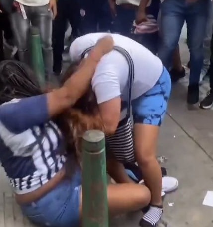 De acuerdo con testigos, la esposa encaró a su pareja y, tras un intercambio de palabras, la situación escaló hasta llegar a los golpes entre las mujeres involucradas. El enfrentamiento atrajo la mirada de peatones y comerciantes de la zona, quienes observaron con sorpresa la escena.