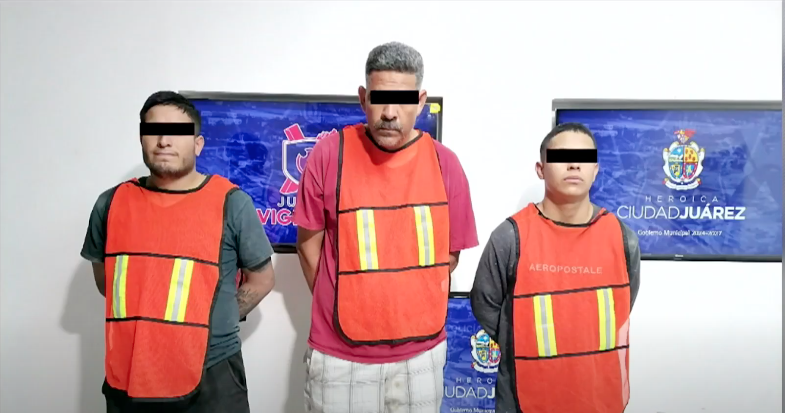 Ciudad Juárez, Chih.-Tres hombres fueron arrestados luego de ser acusados de sustraer equipo de una empresa de transporte ubicada en el cruce del bulevar Óscar Flores y la calle Rincón del Solar, en la colonia del mismo nombre.
