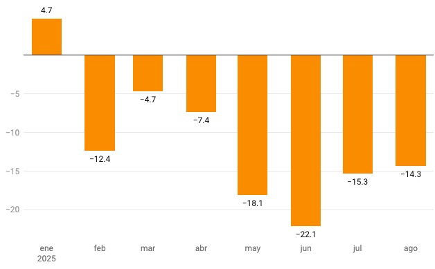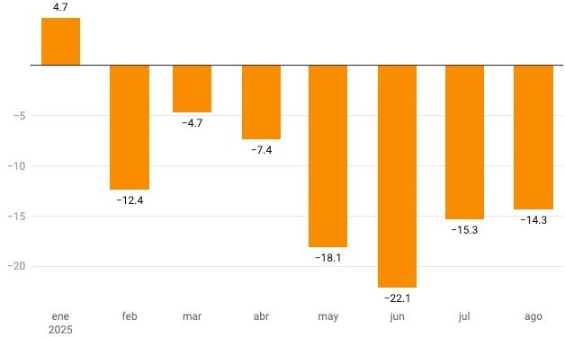 En tanto, Gerardo Gómez, director general de la consultora JD Power, reveló que en agosto se vendieron en México 78 mil 294 autos chinos, lo que representa una caída del 11.5 por ciento respecto al mismo periodo de 2024. Dentro de este segmento, el MG5 de la marca MG se mantiene como el modelo más vendido, con 14 mil 521 unidades, aunque también registró una baja del 17 por ciento en comparación con el año pasado.