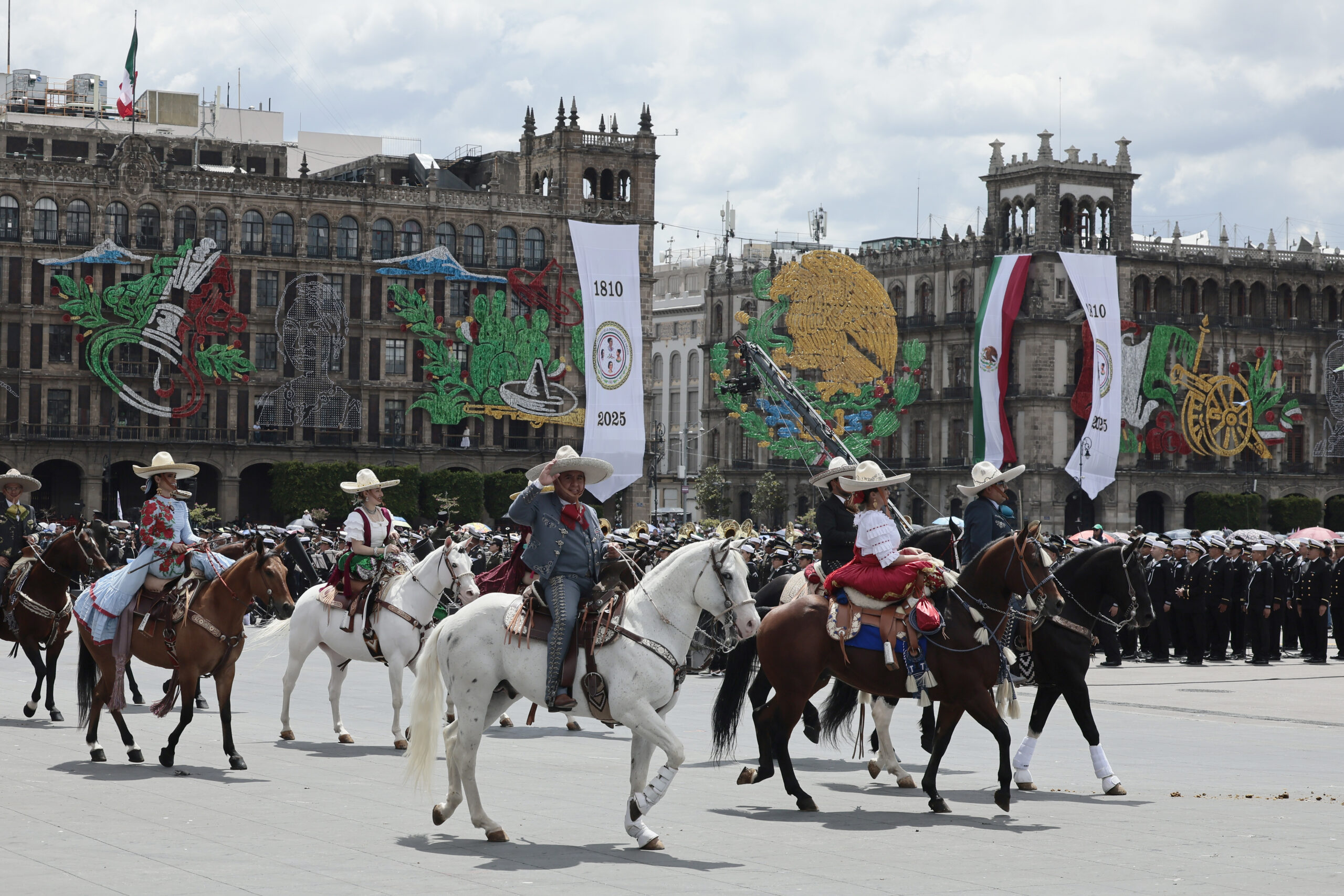 México.- Personas con trajes tradicionales mexicanos participan durante el desfile del 215 aniversario de la independencia de México este martes, en el Zócalo de Ciudad de México (México). Las Fuerzas Armadas exhibieron su poderío en el primer desfile militar encabezado por la presidenta Claudia Sheinbaum, en conmemoración de la independencia del país, donde se resaltó la defensa de la soberanía y el combate a la corrupción, en medio de controversias por señalamientos criminales dentro de la Marina mexicana y tensiones con Estados Unidos.
