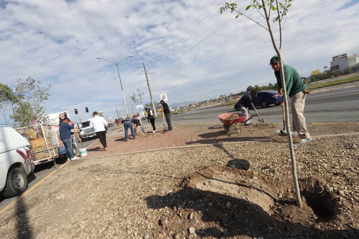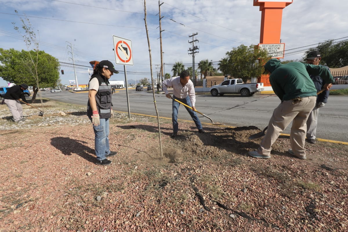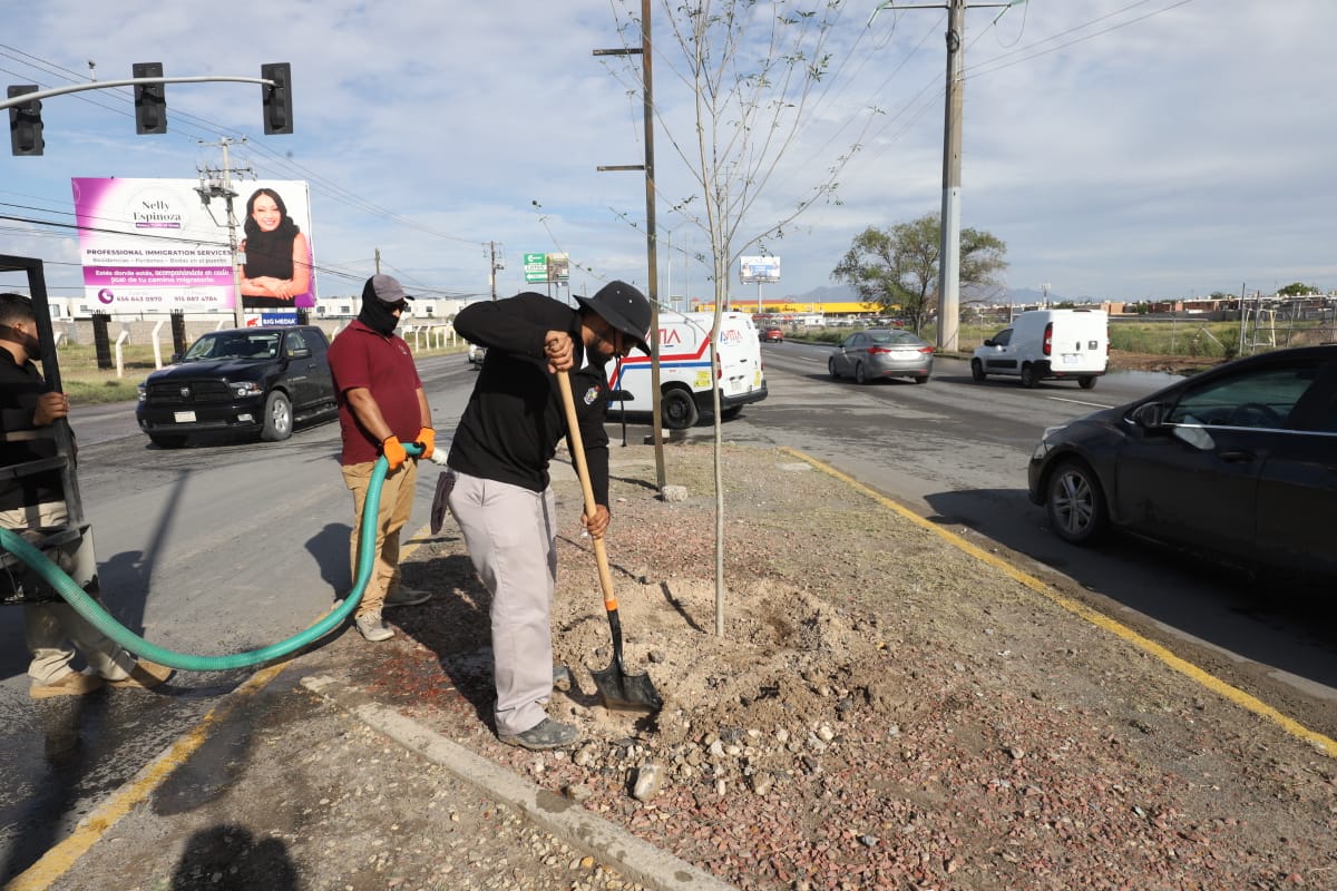 Ciudad Juárez, Chih.- La Dirección de Parques y Jardines del Gobierno Municipal plantó 45 árboles adicionales en el camellón de la avenida Ejército Nacional, en el tramo que va de Rancho Mesteñas a Paseo de la Victoria. Con esta jornada, suman ya 345 árboles reforestados en esa zona de la ciudad.
