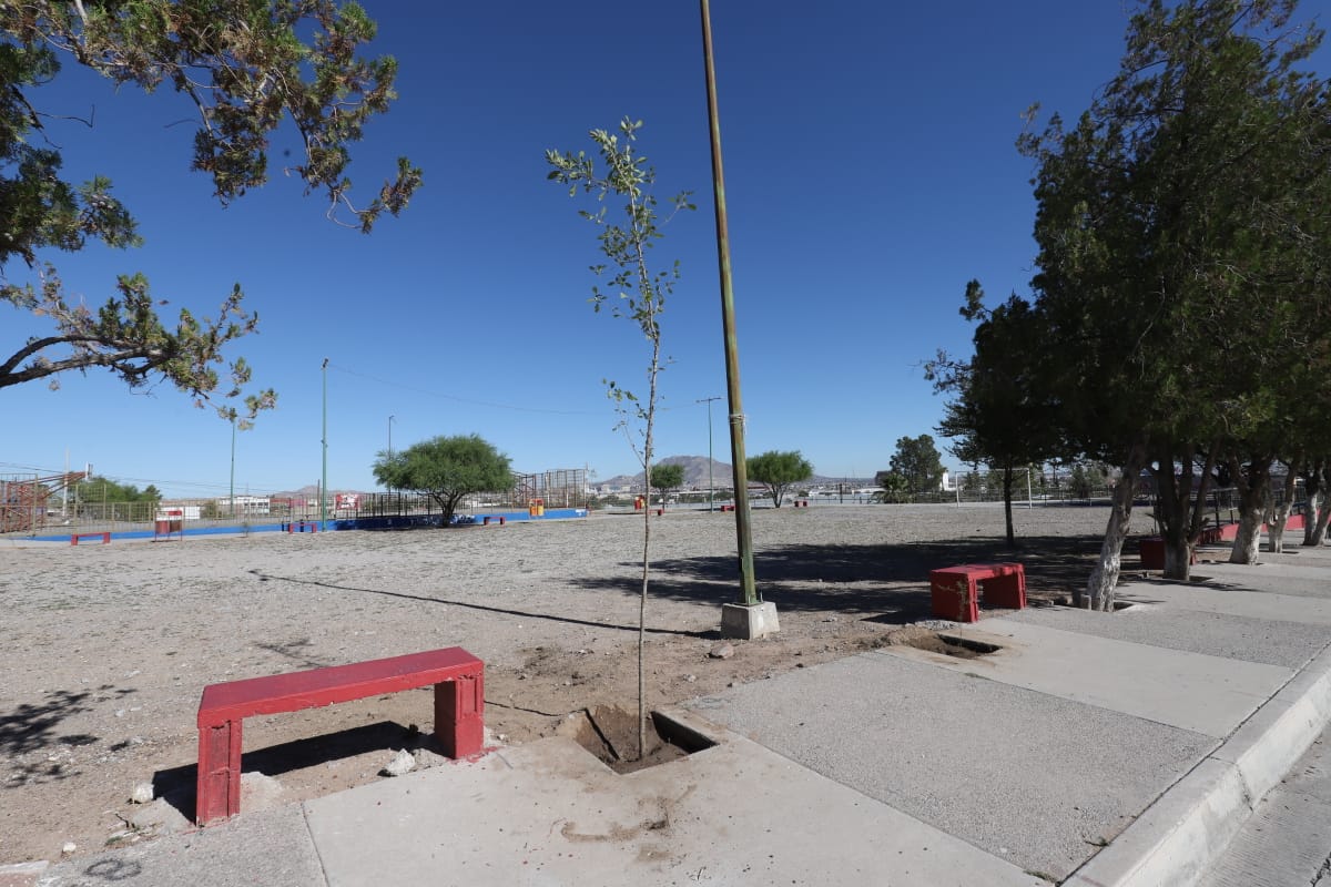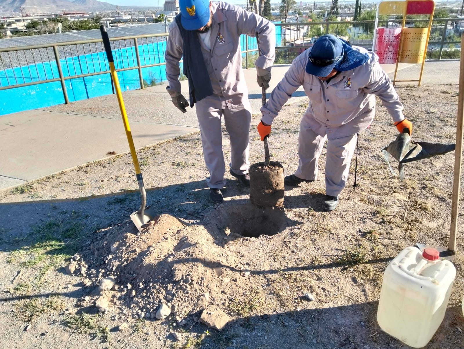 Ciudad Juárez, Chih.- La Dirección de Parques y Jardines llevó a cabo una jornada de reforestación en el parque ubicado en el cruce de las calles Holanda y Granada, en la colonia San Antonio, donde fueron plantados 10 fresnos y cinco árboles de la especie palo verde.