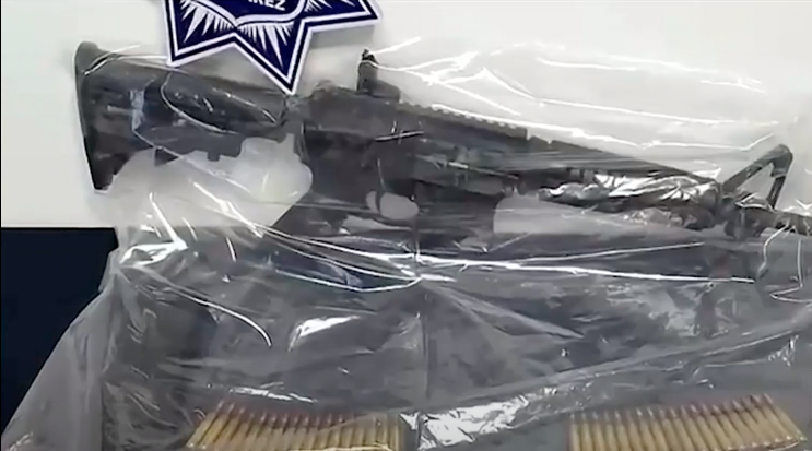 Mediante un operativo de búsqueda, los agentes localizaron uno de los vehículos robados en el cruce de las calles Pavorreal y Eje Vial Juan Gabriel. Durante la inspección, al joven le fueron asegurados dos teléfonos celulares, una mochila con pertenencias de las víctimas, una consola de videojuegos, tres perfumes, dinero en efectivo y un arma larga calibre .45 con un cargador abastecido con 37 cartuchos útiles.