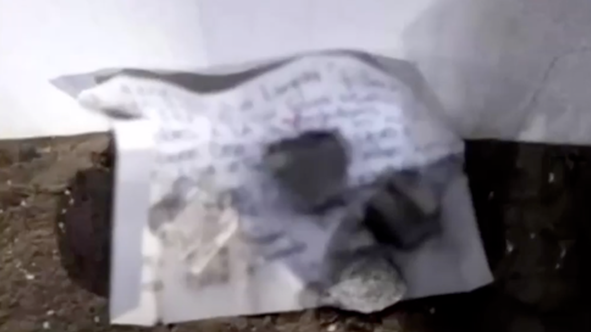 El mensaje fue localizado sobre el pavimento y, para evitar que se lo llevara el viento
