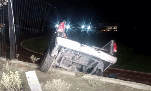 Según versiones preliminares, una camioneta color gris de modelo reciente, con al menos tres ocupantes —dos mujeres y un hombre—, circulaba sobre avenida de Las Américas y, tras cruzar el semáforo de Paseo Triunfo y 16 de Septiembre, perdió el control e impactó con fuerza contra la banqueta, destruyendo por completo la barra metálica de contención y la reja del estadio.