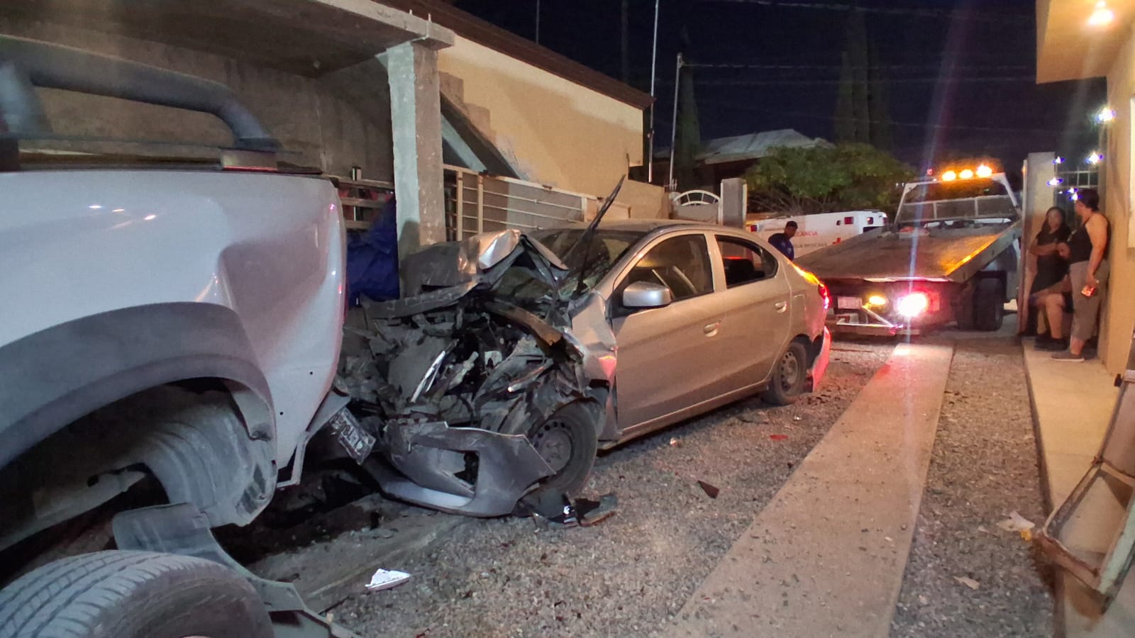 El accidente se registró en el cruce de Isla Española y Loreto, donde el conductor descendía por una pendiente cuando perdió el control del automóvil. La unidad impactó contra una vivienda, golpeando tres vehículos particulares que estaban estacionados en el interior.