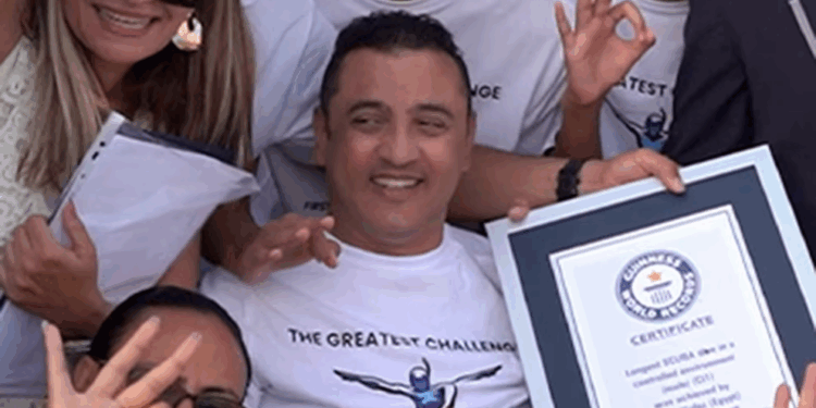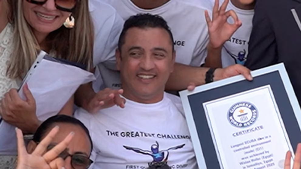 Oficial egipcio cuadripléjico rompe récord mundial de buceo en Egipto