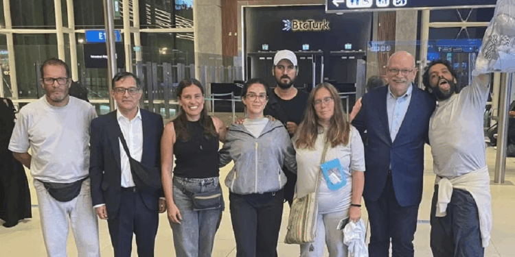 México.- Los seis mexicanos que integraban la Flotilla Global Sumud y que fueron detenidos durante varios días por Israel tras intentar llevar ayuda humanitaria a la Franja de Gaza, llegaron este miércoles al aeropuerto de Ciudad de México, donde fueron recibidos por el canciller Juan Ramón de la Fuente.