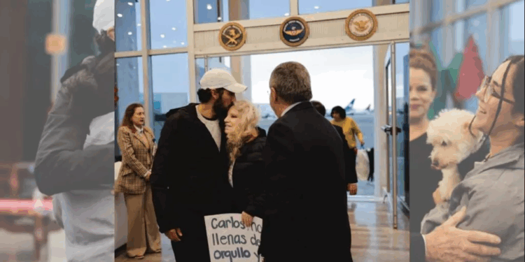 Desde temprano, familiares y activistas se congregaron en la Terminal 1 del aeropuerto capitalino para darles la bienvenida con gritos, aplausos y pancartas, aunque denunciaron que las autoridades intentaron evitar que los recién llegados fueran vistos públicamente.