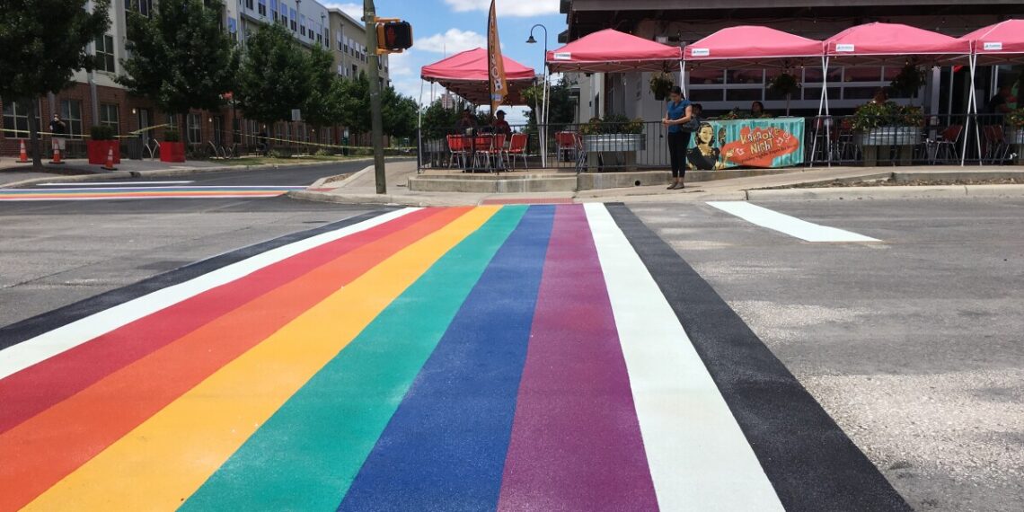 En las principales ciudades del estado, incluyendo Austin, la capital; San Antonio o Houston existen varios cruces peatonales adornados con los colores de la bandera LGTBIQ+, especialmente en zonas universitarias o barrios histórica y culturalmente relevantes para la comunidad.