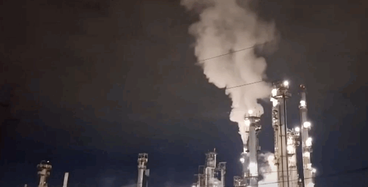 Aunque la emisión de vapor forma parte del funcionamiento habitual de muchas refinerías, la intensidad y alcance visual de esta columna generó sorpresa entre quienes la presenciaron. Algunas imágenes también muestran ligeras flamas saliendo de las chimeneas, lo que indica procesos internos controlados por la planta.