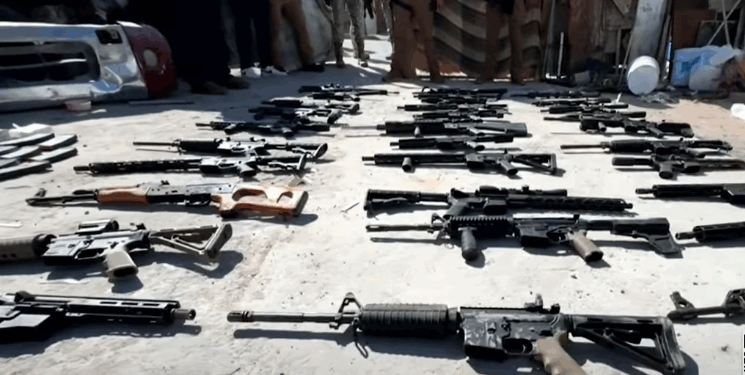 Además del rescate de las víctimas, las autoridades aseguraron 38 armas de fuego —entre fusiles y pistolas— y una gran cantidad de cartuchos de distintos calibres.