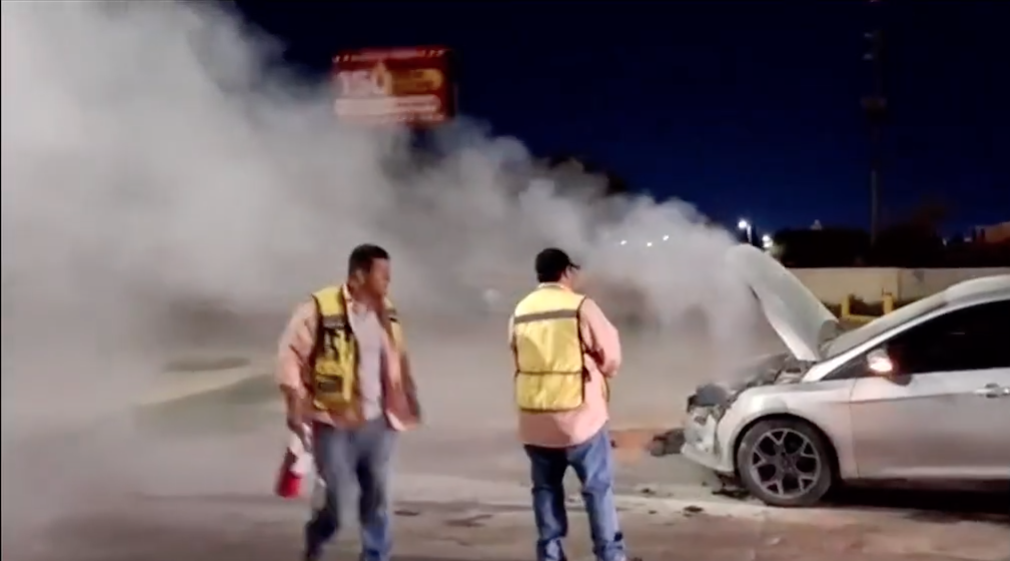 El incidente ocurrió sobre la avenida Juan Pablo II, casi en el cruce con Antonio J. Bermúdez, donde el automóvil marca Vista comenzó a prenderse en llamas, aparentemente a causa de una falla mecánica. Las llamas alcanzaron gran altura y amenazaban con consumir por completo la unidad.