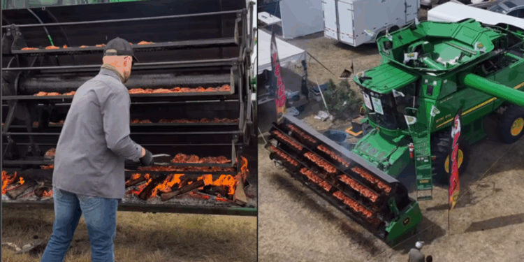 Chihuahua.- Un video publicado por el creador mexicano Franz Loewen Fehr, conocido como @agromenon, causó sensación al mostrar cómo una cosechadora fue transformada en un asador gigante durante el Festival de Otoño 2025 en la comunidad menonita de Cuauhtémoc, Chihuahua.