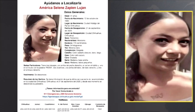 Ciudad Juárez, Chih.- América Selene Zapien Luján, de 41 años, fue vista por última vez el 21 de septiembre. Su familia, preocupada por la falta de contacto, presentó una denuncia formal ante la unidad de personas no localizadas.