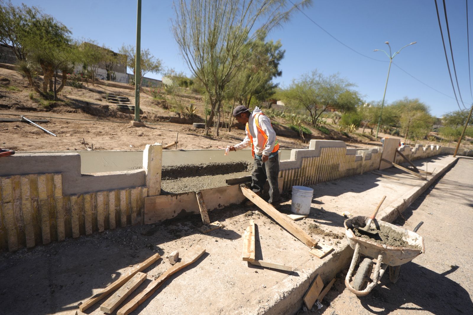 En el caso del parque Familias Felices, las labores actuales incluyen el colado de banquetas y próximamente se instalarán mesas de picnic, una cisterna para distribución de agua, así como equipos de juego y aparatos de calistenia. También se rehabilitarán los juegos existentes.