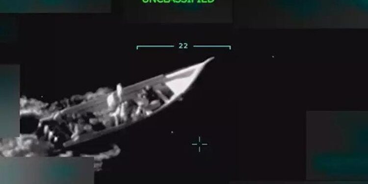 El jefe del Pentágono precisó que dos supuestos “narcoterroristas” murieron en el bombardeo, del que compartió un video donde puede verse cómo un proyectil alcanza una lancha, que estalla en llamas.