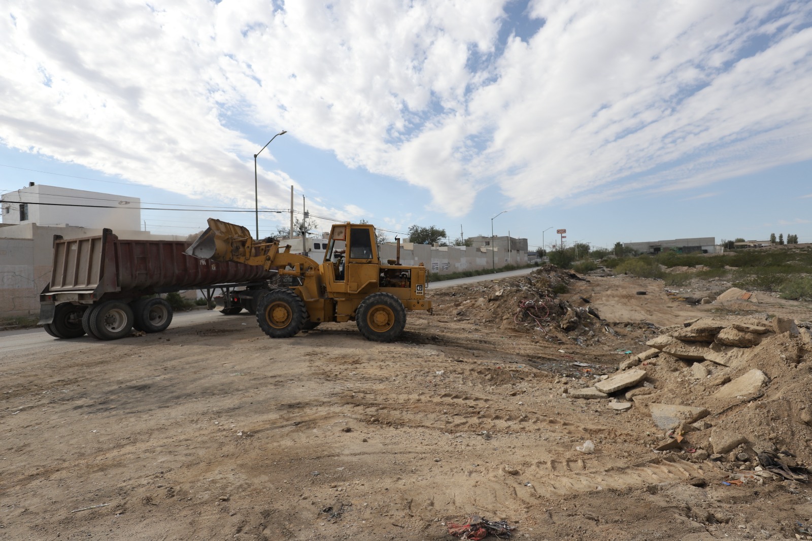 Ciudad Juárez, Chih. – En respuesta a una solicitud ciudadana hecha directamente al presidente municipal Cruz Pérez Cuéllar durante una jornada de la Cruzada por las Causas de Juárez, personal de la Dirección de Limpia intervino un predio baldío ubicado sobre la calle Puerto Obaldía.