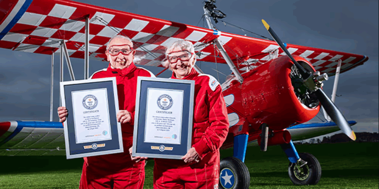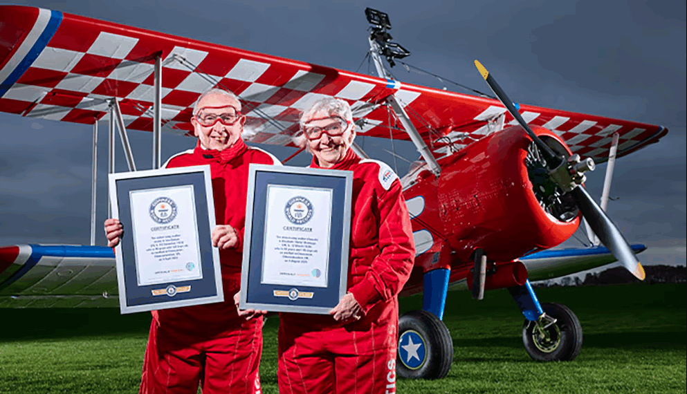 Elizabeth “Betty” Bromage, de 93 años, y John Symmonds, de 95, se convirtieron en los wing walkers más longevos del mundo al realizar acrobacias sobre las alas de un avión. Sus vuelos no solo fueron extremos, también con causa: recaudaron fondos para hospicios.