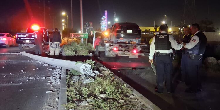 Ciudad Juárez, Chih.-Un aparatoso accidente se registró en el cruce de Juan Pablo II y Ramón Rayón, donde un vehículo particular derribó dos postes propiedad de la Comisión Federal de Electricidad (CFE).