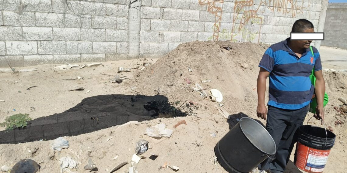 Ciudad Juárez, Chih.– Gracias a una pronta acción de la Dirección de Limpia y la Secretaría de Seguridad Pública Municipal, se logró la detención de un individuo que fue sorprendido vertiendo aceite quemado en la vía pública, en la colonia Águilas de Zaragoza.
