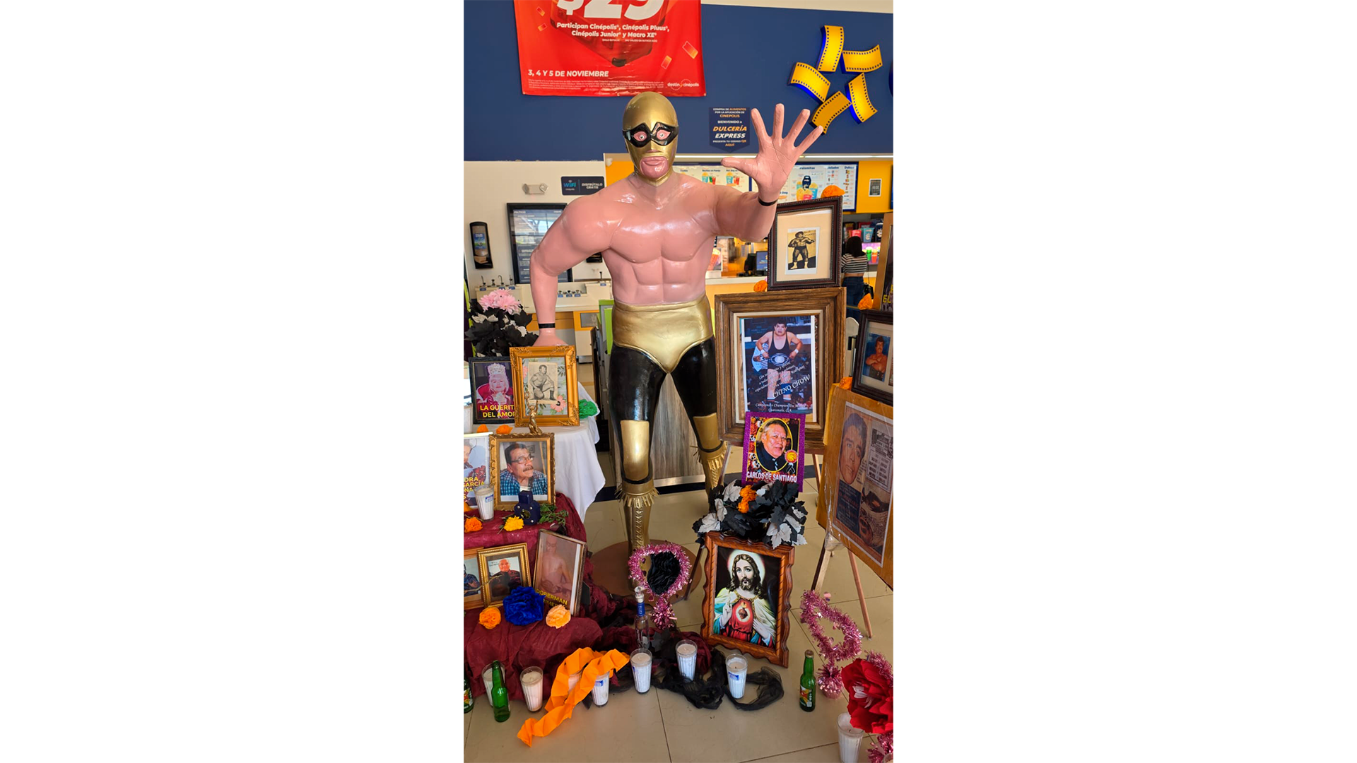 Ciudad Juárez, Chih.- Con una mezcla de nostalgia y orgullo, decenas de juarenses asistieron a la Galería de Gladiadores Finados 2025, un homenaje dedicado a aquellos luchadores que forjaron historia en los encordados locales y que hoy ya no están. La muestra se presentó en el corazón del Centro de la ciudad, dentro de Cinépolis Centro Mall, sobre la calle Santos Degollado.
