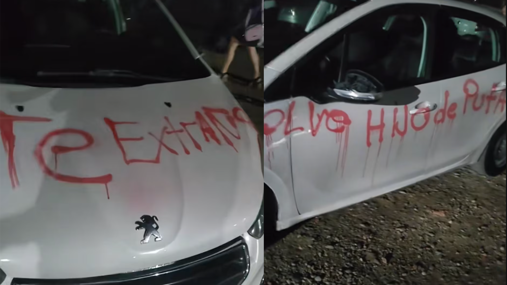 Durante la noche de Halloween, en una fiesta realizada en el Médano de Oro, un Peugeot 207 se convirtió en el centro de atención, no por su modelo ni por su color, sino por los mensajes pintados en su carrocería. “Te extraño”, “Infiel” y “Volvé, hdp” fueron solo algunas de las frases que cubrían el auto, combinando reproches con declaraciones de amor.