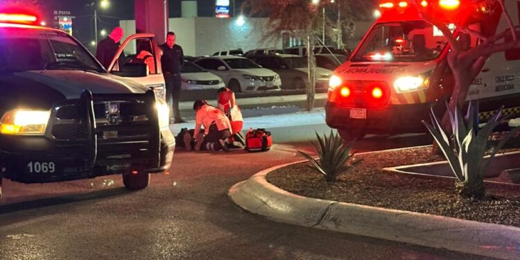 Ciudad Juárez, Chih., 6 de noviembre de 2025.— Autoridades viales realizan las investigaciones correspondientestras un incidente ocurrido frente a Plaza Ramacoi, donde una mujer aparentemente se habría arrojado frente a un vehículo en movimiento.
