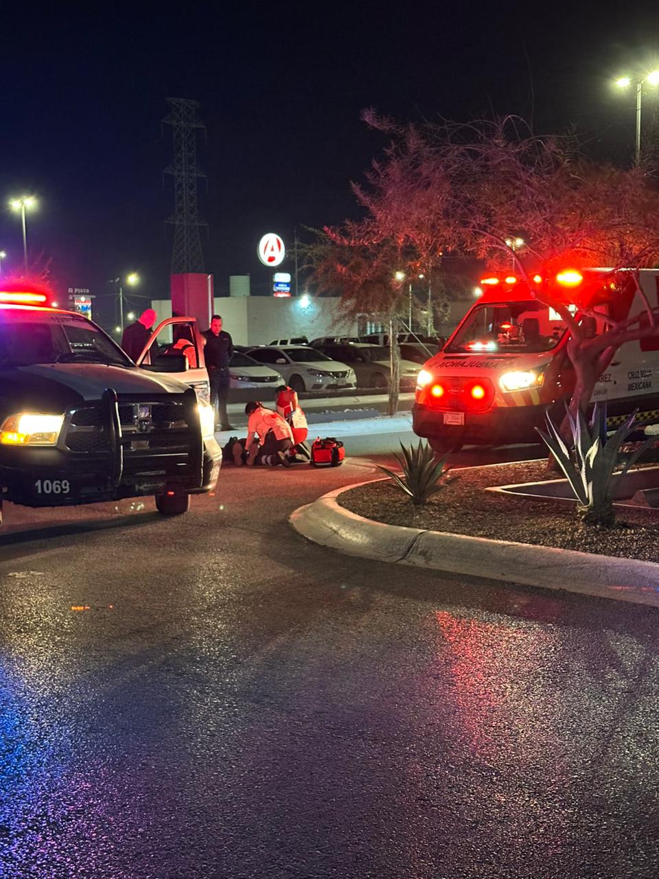 Ciudad Juárez, Chih., 6 de noviembre de 2025.— Autoridades viales realizan las investigaciones correspondientestras un incidente ocurrido frente a Plaza Ramacoi, donde una mujer aparentemente se habría arrojado frente a un vehículo en movimiento.