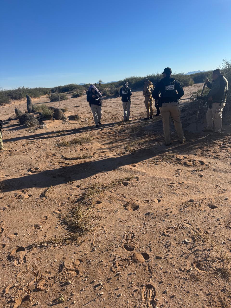 Durante la jornada de este jueves, autoridades de los tres niveles de gobierno recorrieron a pie una amplia zona del desierto con el objetivo de hallar indicios que ayuden a esclarecer el caso.