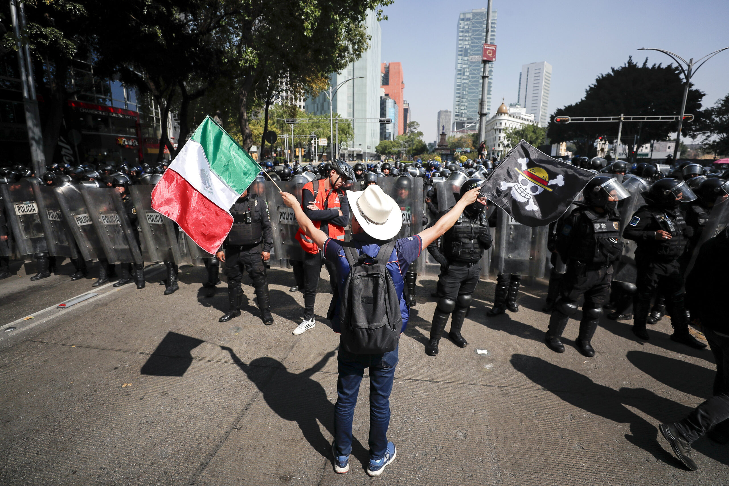 Los focos rojos de la policía de Ciudad de México se prendieron días antes porque los convocantes de la marcha buscaban hacer coincidir su manifestación con el tradicional desfile militar del 20 de noviembre del Gobierno mexicano, encabezado por la presidenta, Claudia Sheinbaum, por posibles disturbios después de la protesta del pasado sábado.