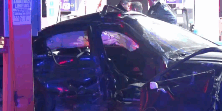 El Mustang fue proyectado por la fuerza del impacto contra un señalamiento vial y otro anuncio perteneciente a una empresa privada, causando daños materiales adicionales.