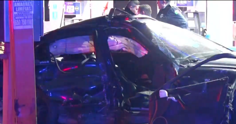 El Mustang fue proyectado por la fuerza del impacto contra un señalamiento vial y otro anuncio perteneciente a una empresa privada, causando daños materiales adicionales.