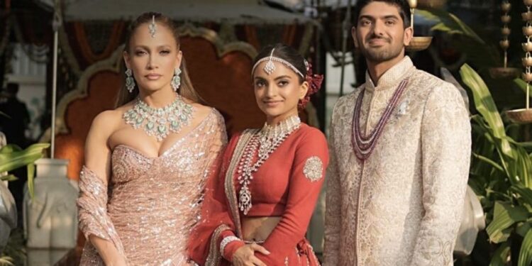 Udaipur, India. La cantante Jennifer Lopez se convirtió en la estrella indiscutible de la boda entre Netra Mantena y Vamsi Gadiraju, celebrada en la ciudad de Udaipur, donde ofreció un espectáculo privado por el que habría recibido un pago de 2 millones de dólares.