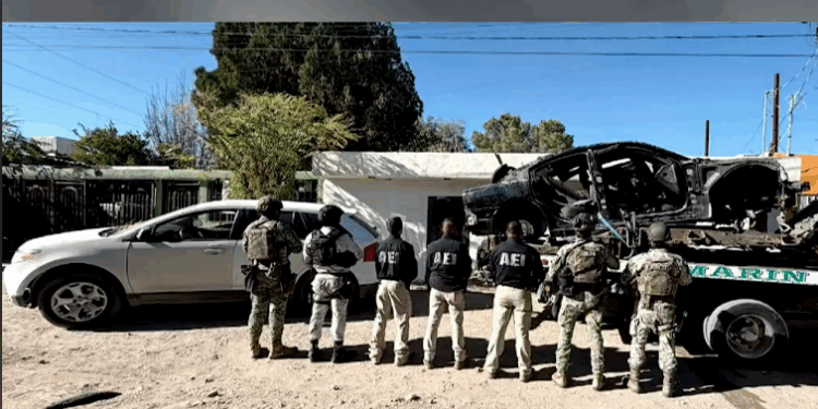 Ciudad Juárez, Chih.- Agentes de investigación llevaron a cabo una inspección en una vivienda de la colonia El Sauzal, donde lograron ubicar y asegurar varios objetos de interés criminal. Entre ellos destaca un vehículo Dodge Charger negro que tenía reporte de robo desde el 27 de febrero en El Paso, Texas, así como una camioneta Ford Edge blanca que presentaba anomalías en su número de serie y chasis.