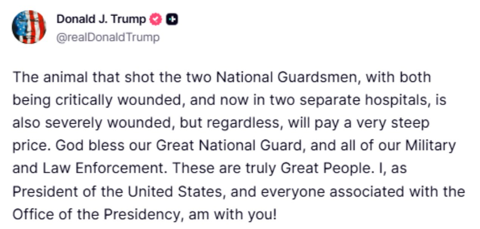 El personal de la Guardia Nacional se encontraba desplegado en Washington por órdenes del propio presidente, como parte de un operativo federal para hacer frente a lo que su gobierno califica como una crisis de criminalidad en la ciudad.
