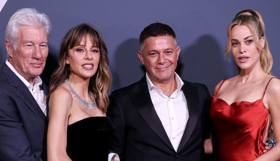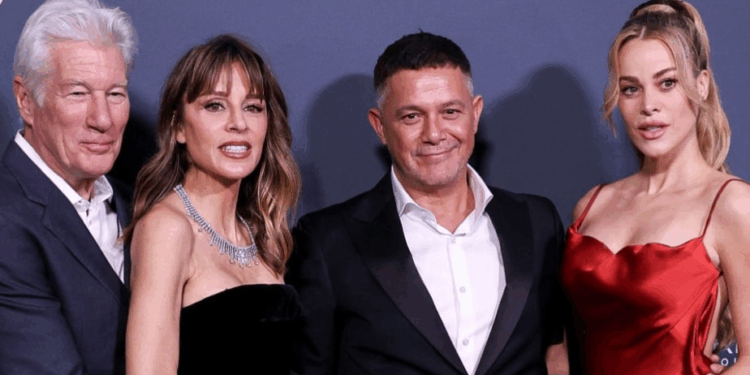 Sanz acudió al evento acompañado de su pareja, la actriz Candela Márquez, con quien reapareció públicamente luego de semanas de especulaciones sobre su relación. La pareja se mostró unida y sonriente, posando junto a los Gere en un gesto de cercanía y complicidad.