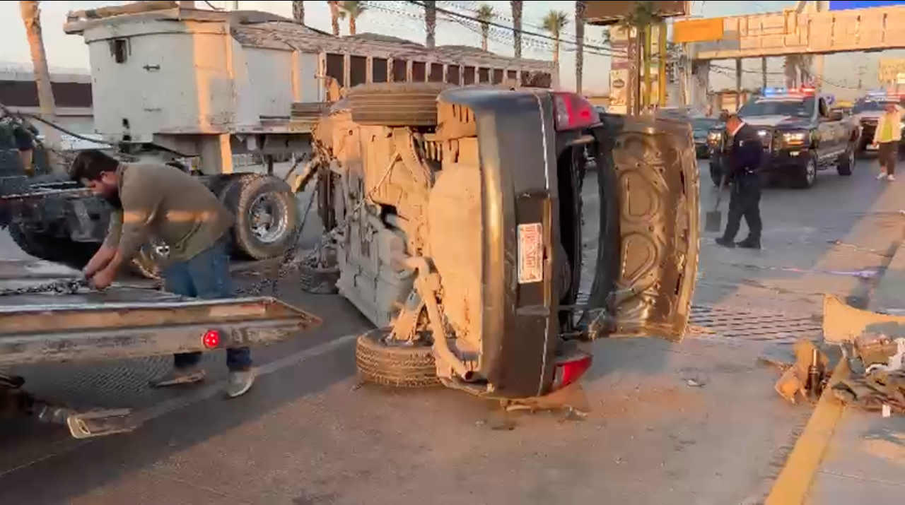 Conductor se pasa la luz roja y provoca volcadura frente a Las Misiones; responsable huyó del lugar