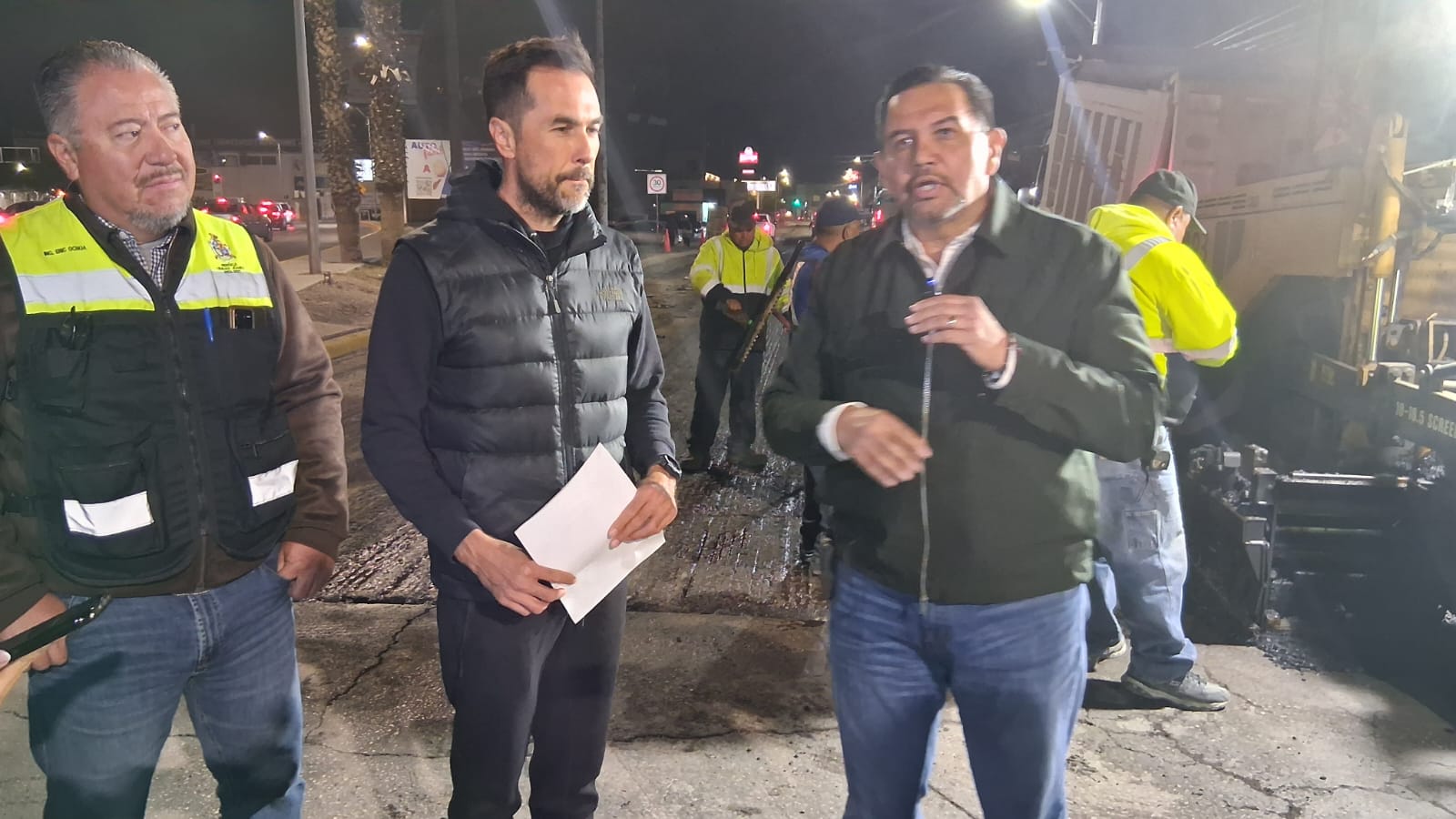 Ciudad Juárez, Chih.- El alcalde de Ciudad Juárez, Cruz Pérez Cuéllar, encabezó este jueves la supervisión de obras de reencarpetado en distintos puntos de la ciudad, específicamente en la avenida Tecnológico y en el Valle de Juárez.