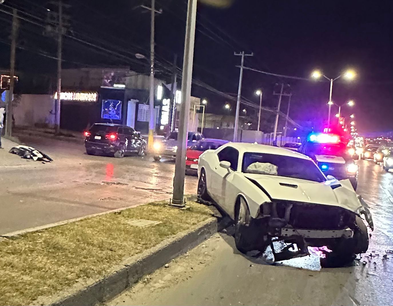 La tarde de hoy se registró un accidente vial sobre la Avenida de las Torres, donde una camioneta Jeep impactó de costado a un vehículo Dodge Challenger, generando tráfico de movimiento lento en la zona.