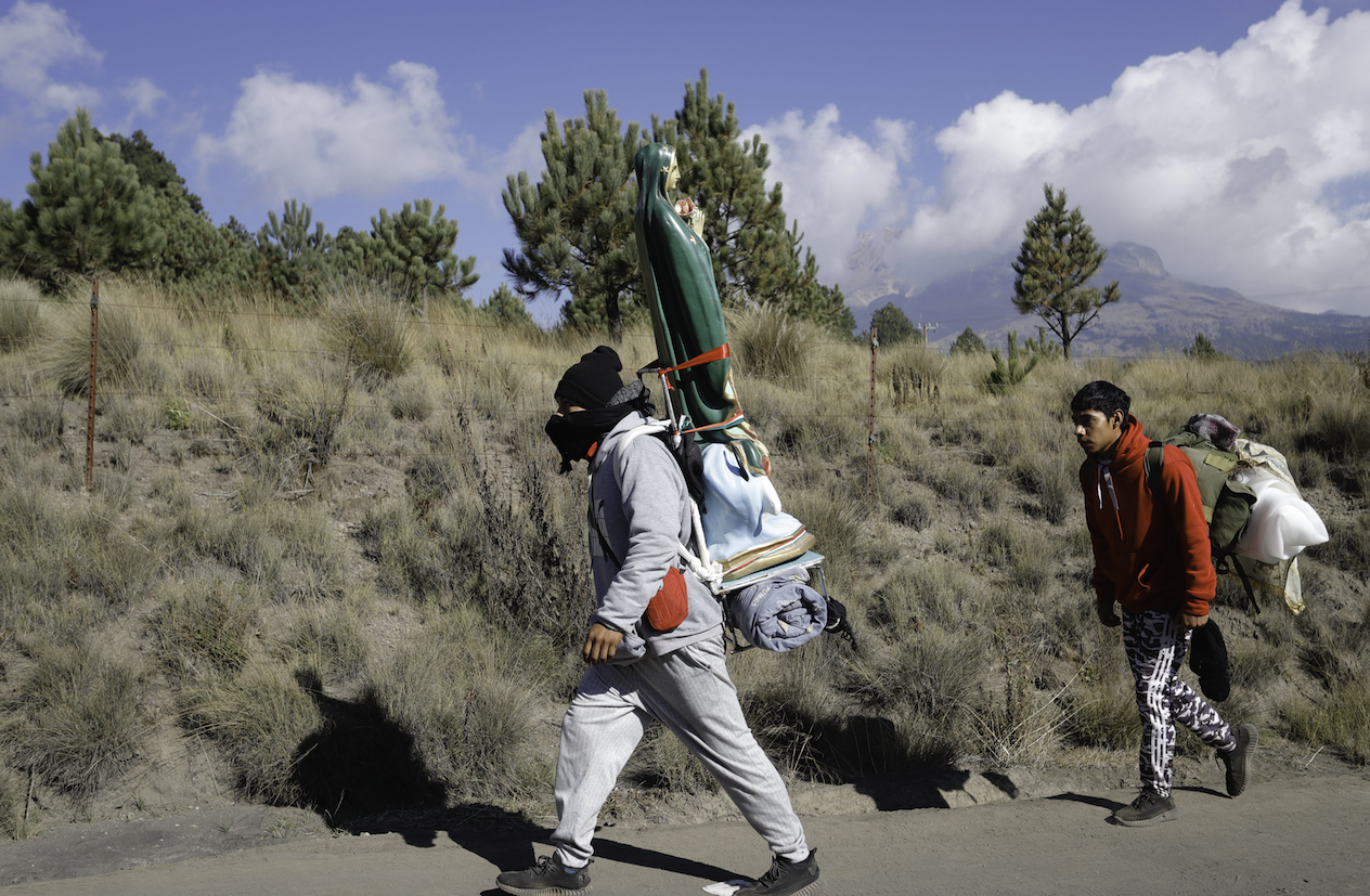 México.- Una persona carga una imagen religiosa durante su peregrinación a la Basílica de Guadalupe este martes, en la zona de Paso de Cortés en Puebla (México). Cientos de fieles mexicanos comenzaron esta semana su peregrinaje anual al Santuario de Guadalupe, que este año espera a millones de visitantes con motivo de los 494 años de la aparición de la Virgen de Guadalupe.