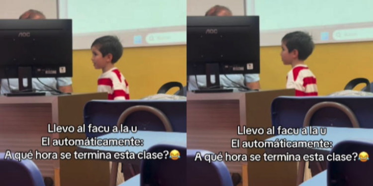 Argentina.– Un momento tierno y divertido ocurrido en una universidad se volvió viral en redes sociales, luego de que un niño acompañara a su madre a clases y sorprendiera a todos con una pregunta que desató risas entre estudiantes y usuarios de plataformas digitales.