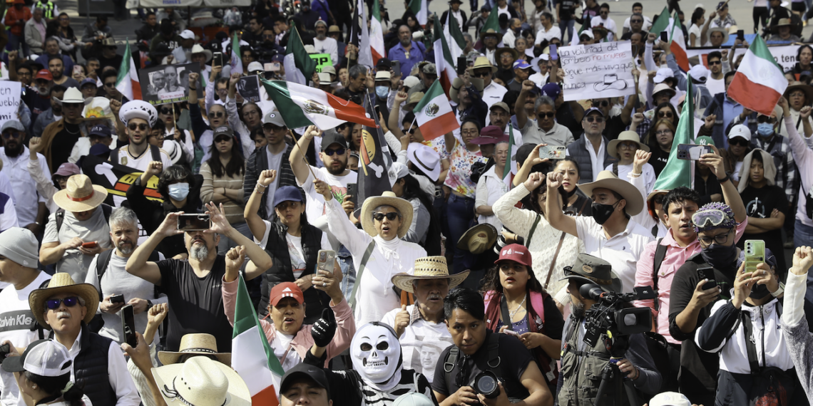 México.- Una persona del movimiento autodenominado ‘Generación Z’ participa en una manifestación este domingo, en el Zócalo de Ciudad de México (México). Alrededor de 300 personas se manifestaron para “visibilizar la violencia cotidiana en el país”, en una movilización de menor convocatoria que la realizada hace un mes, cuando una protesta similar derivó en disturbios en el Zócalo capitalino.