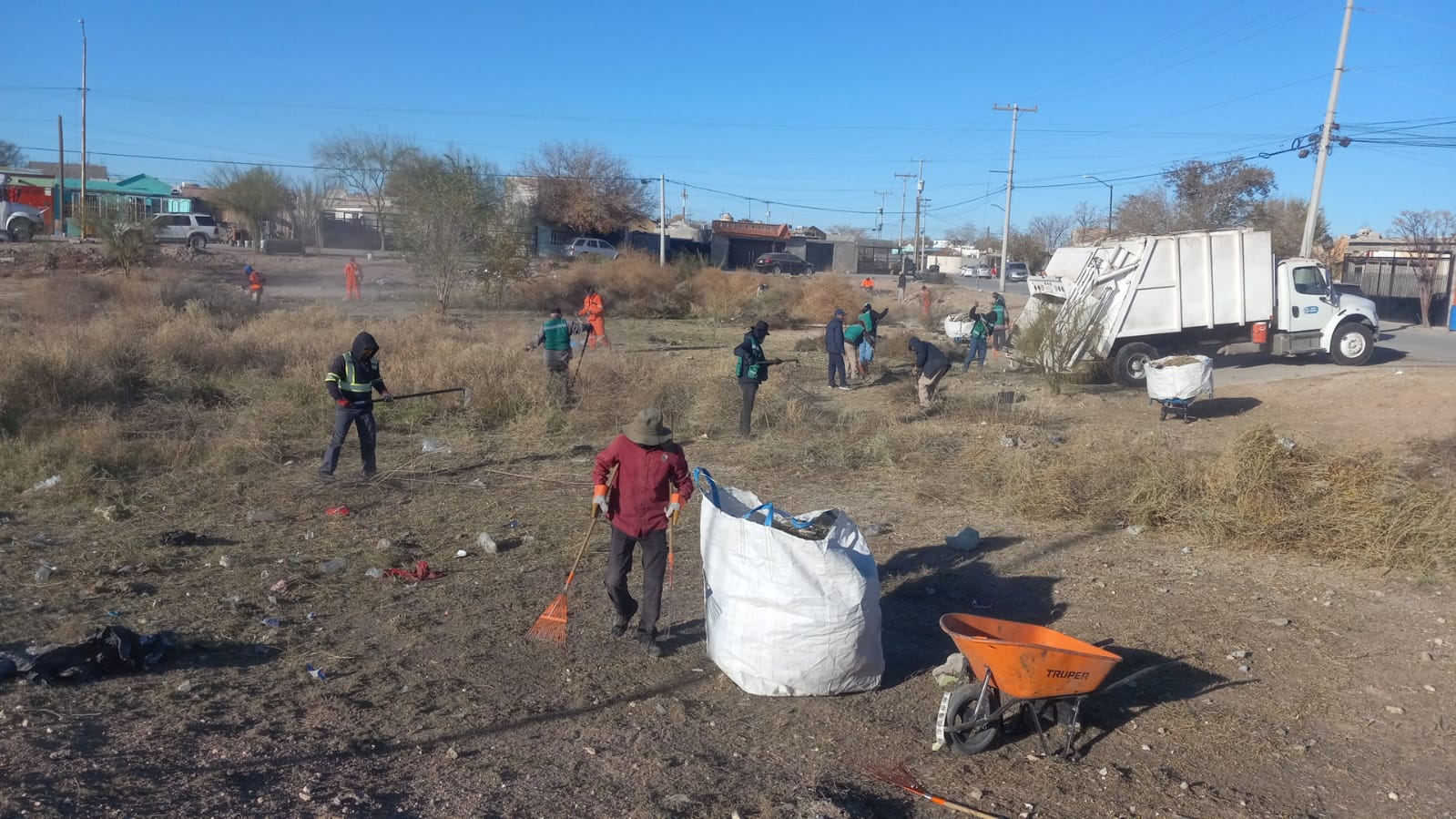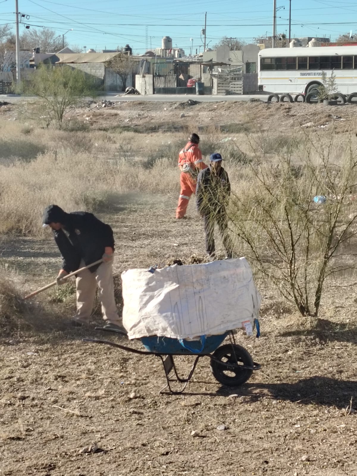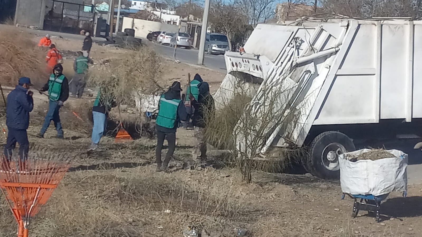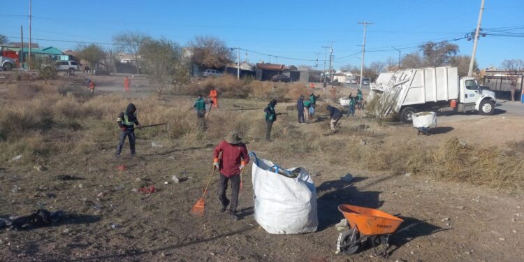Ciudad Juárez, Chih. – Personal de la Dirección de Limpia llevó a cabo trabajos de limpieza en un dique ubicado en el fraccionamiento Senderos de San Isidro, al sur de la ciudad, como parte de las acciones preventivas y de mantenimiento en espacios públicos.