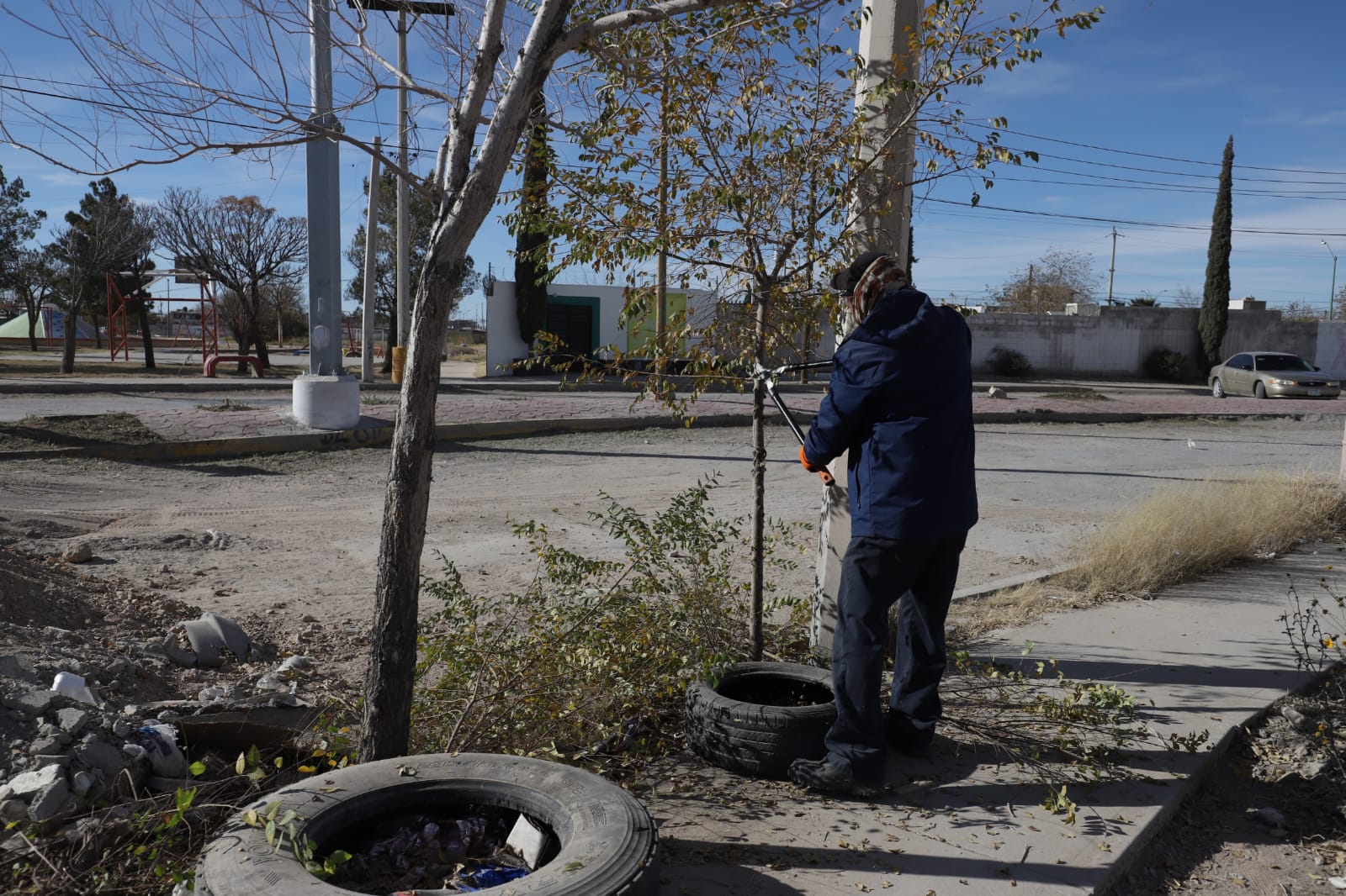 Ciudad Juárez, Chih. – Personal de la Dirección de Parques y Jardines llevó a cabo trabajos de limpieza y mantenimiento general en tres parques y en el camellón central de la calle 40 Ejidatarios, ubicados en el fraccionamiento Rincones de Salvárcar.